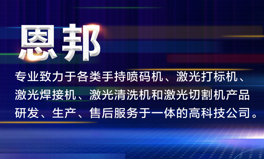 煙臺恩邦電子科技有限公司全系列手持噴碼機(jī),手持激光打標(biāo)機(jī),飛行激光打標(biāo)機(jī),手持寬幅噴碼機(jī),手持激光焊接機(jī),手持激光清洗機(jī),手持大字...
